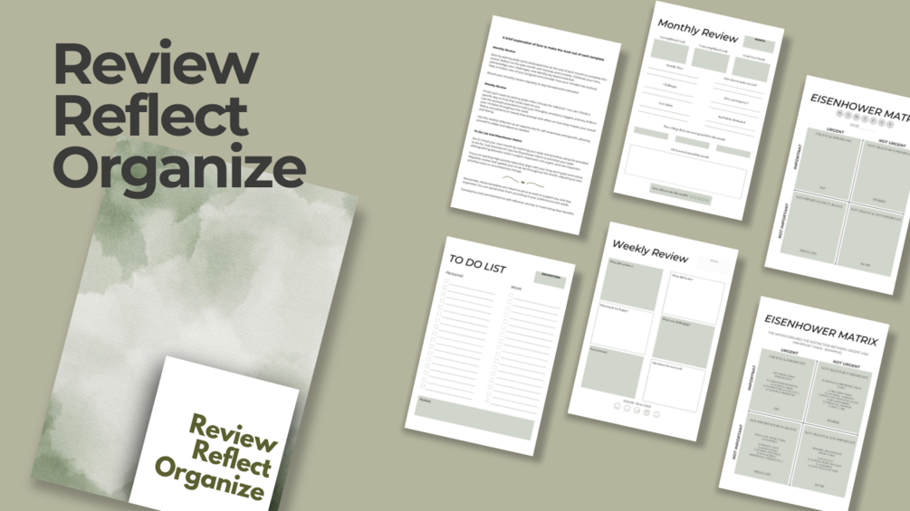 Whether you're a busy professional juggling multiple roles, a student striving to balance academics and extracurriculars, or an individual simply seeking greater clarity in daily life, this Free Planner “Review, Reflect, Organize” is for you.
