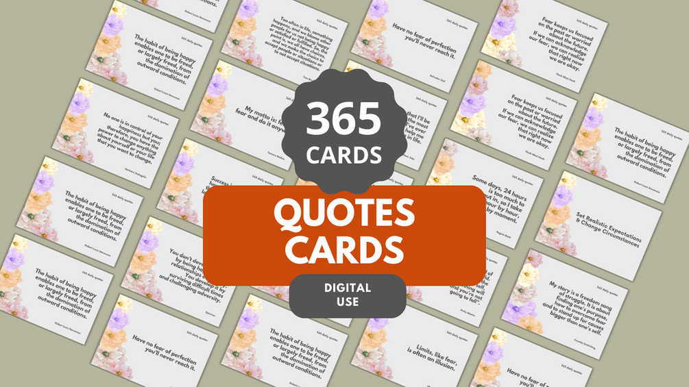 Transform your daily routine with 365 beautifully designed Quote Cards (digital use), perfect for any year. These digital cards are crafted to inspire, motivate, and bring clarity to your life—one day at a time.